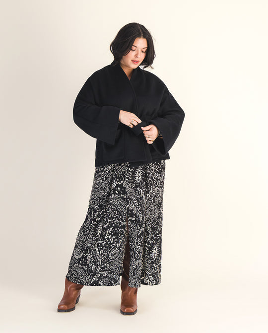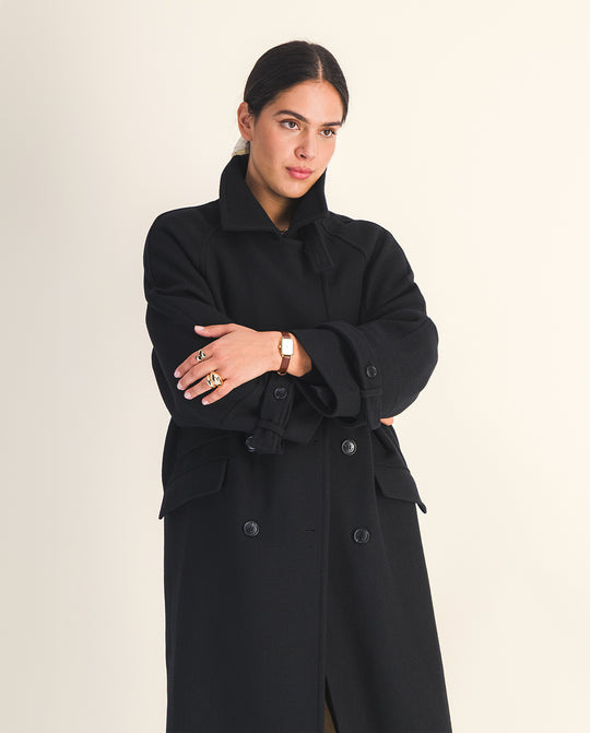 Disponible également en noir, un coloris classique et indémodable, le manteau Aksel s’impose comme un essentiel du vestiaire féminin — alliant structure, confort et élégance durable, saison après saison.