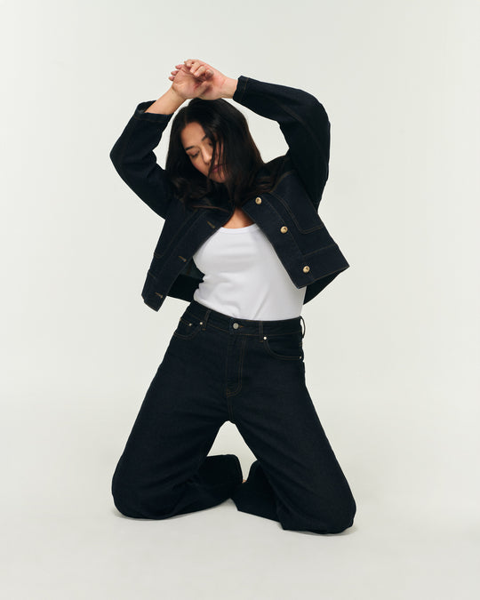 Bien gainant ou oversize, bleu indigo ou blanc crème, droit ou flare... À chacune son jean Almé. Un équilibre entre confort et style libéré.
