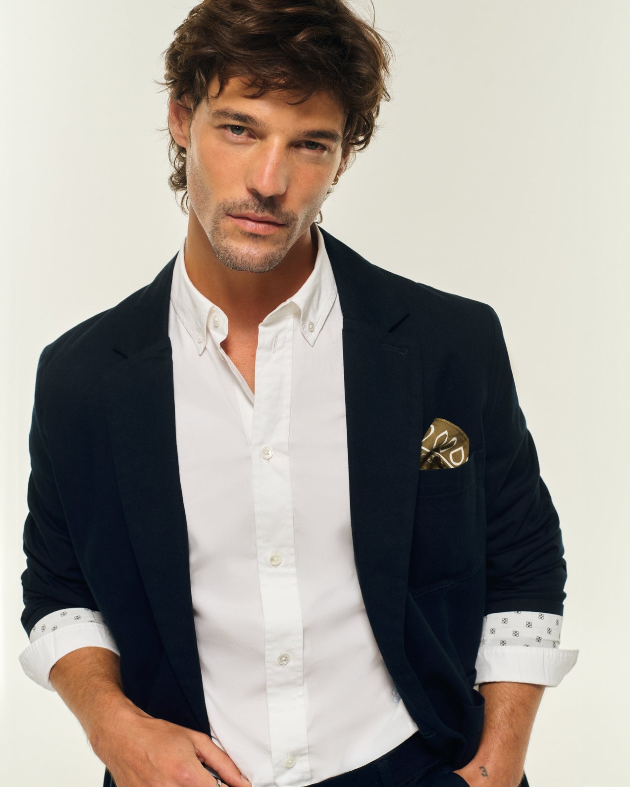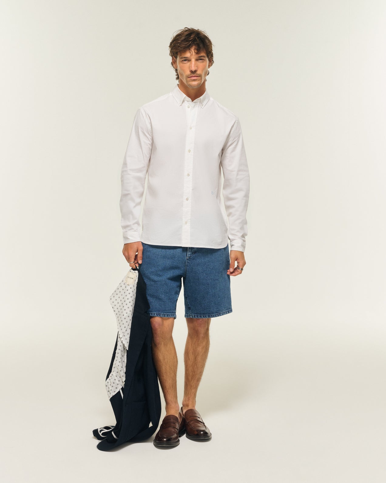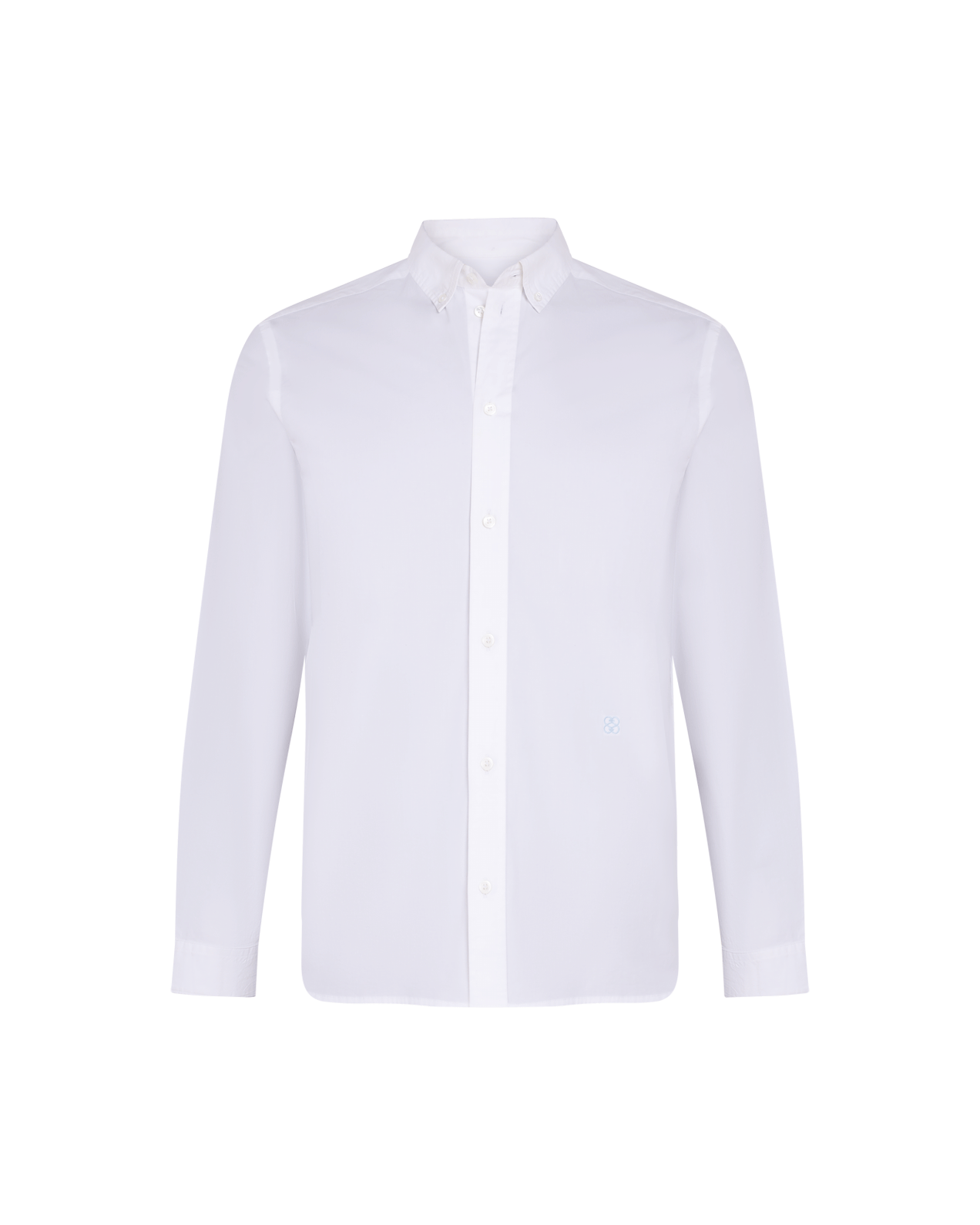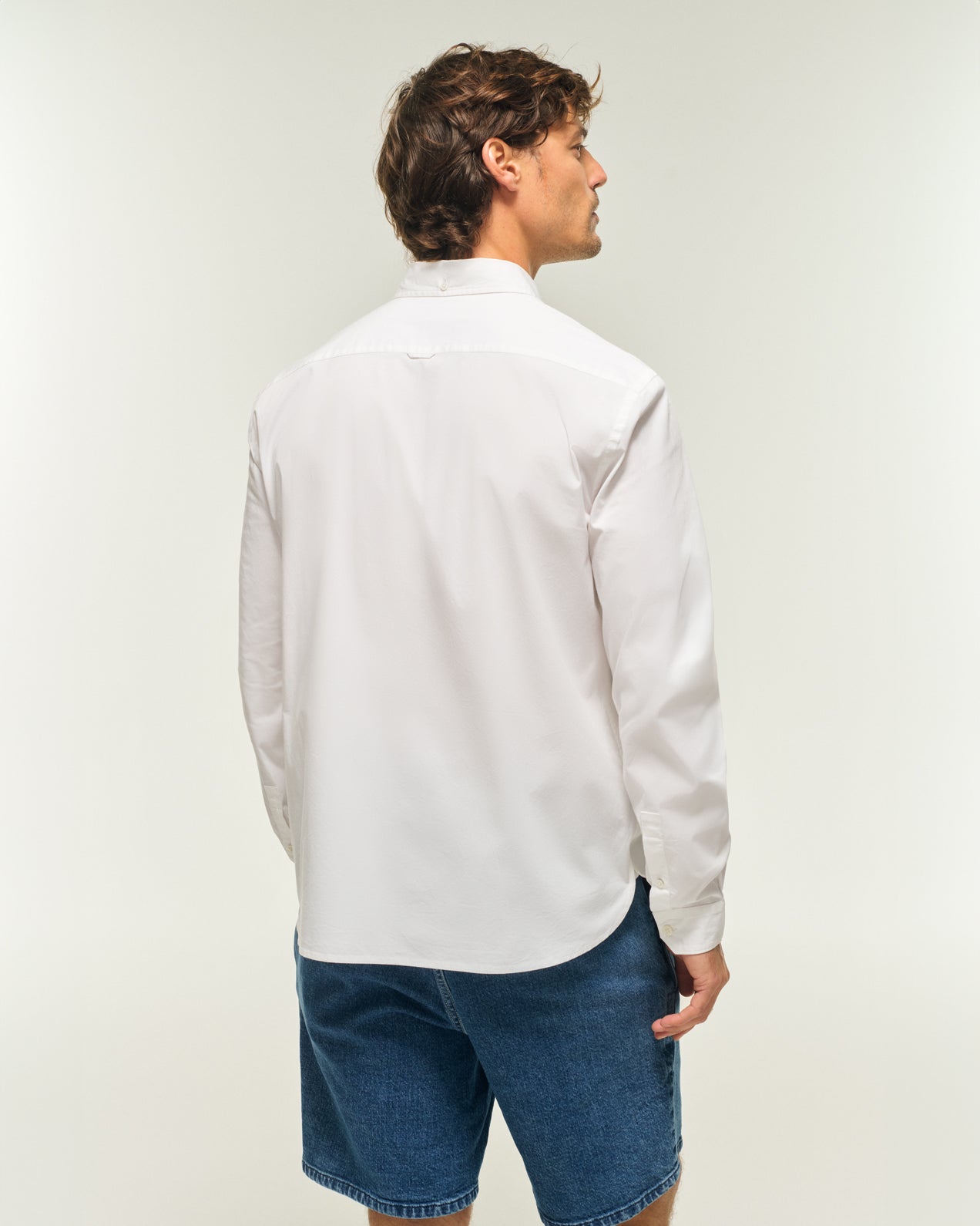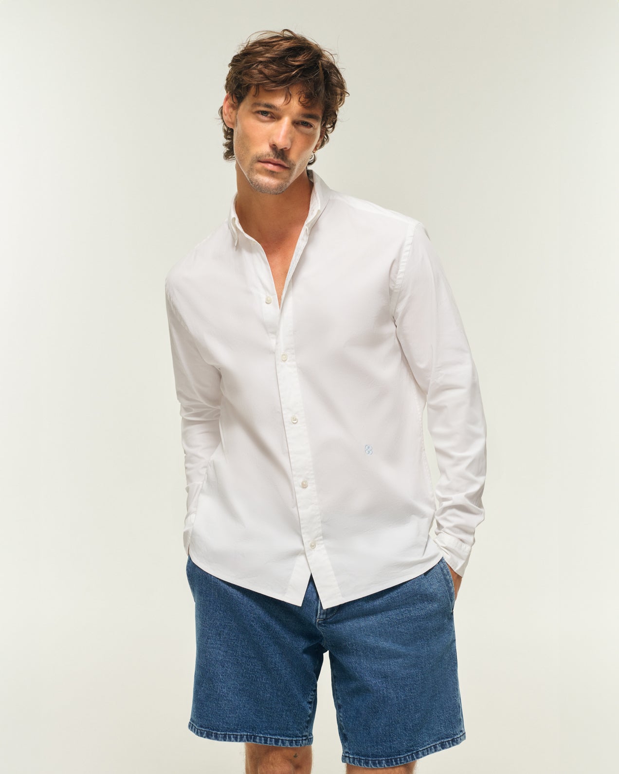 Ce modèle a une coupe regular fit avec stretch, vous pouvez choisir votre taille habituelle. Si vous préférez la porter plus fittée, choisissez la taille en dessous, le stretch de la popeline assurera le confort.