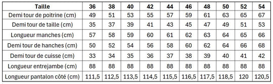 Mesure à prendre horizontalement le long de la taille, en superposant l'avant et l'arrière de la taille/ceinture.