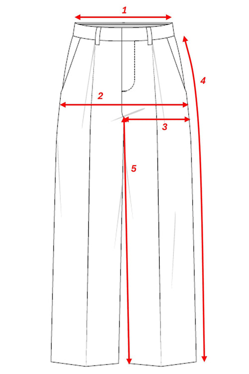 Mesure à prendre à partir de sous la ceinture jusqu'au bas du pantalon.